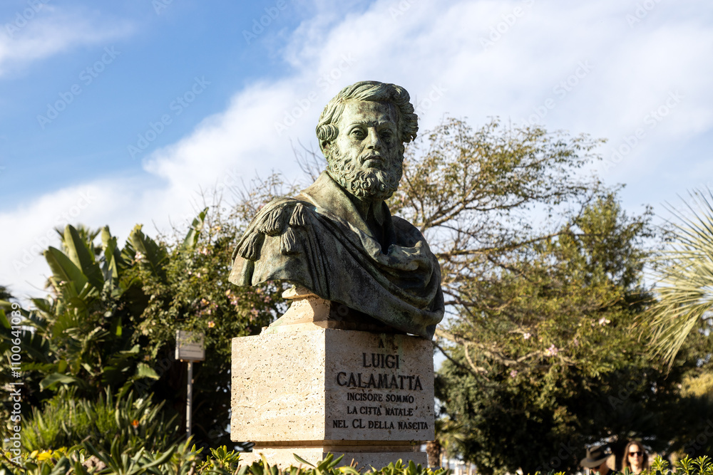 Bust of Luigi Calamatta, a renowned Italian engraver, located in his hometown of Civitavecchia, Italy #1100641039