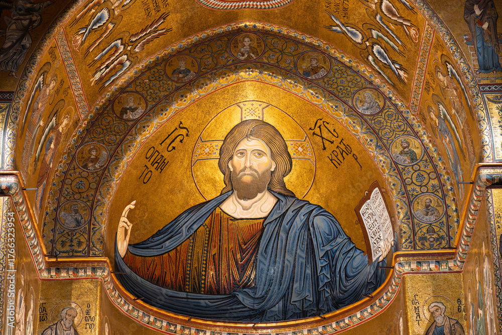 Byzantine Christ Pantocrator mosaic in Monreale Cathedral, Sicily #1766323954