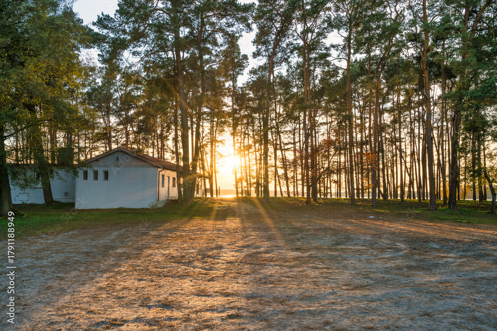 Cabins at the lubikowo lake at sunset. Poland #1791188949