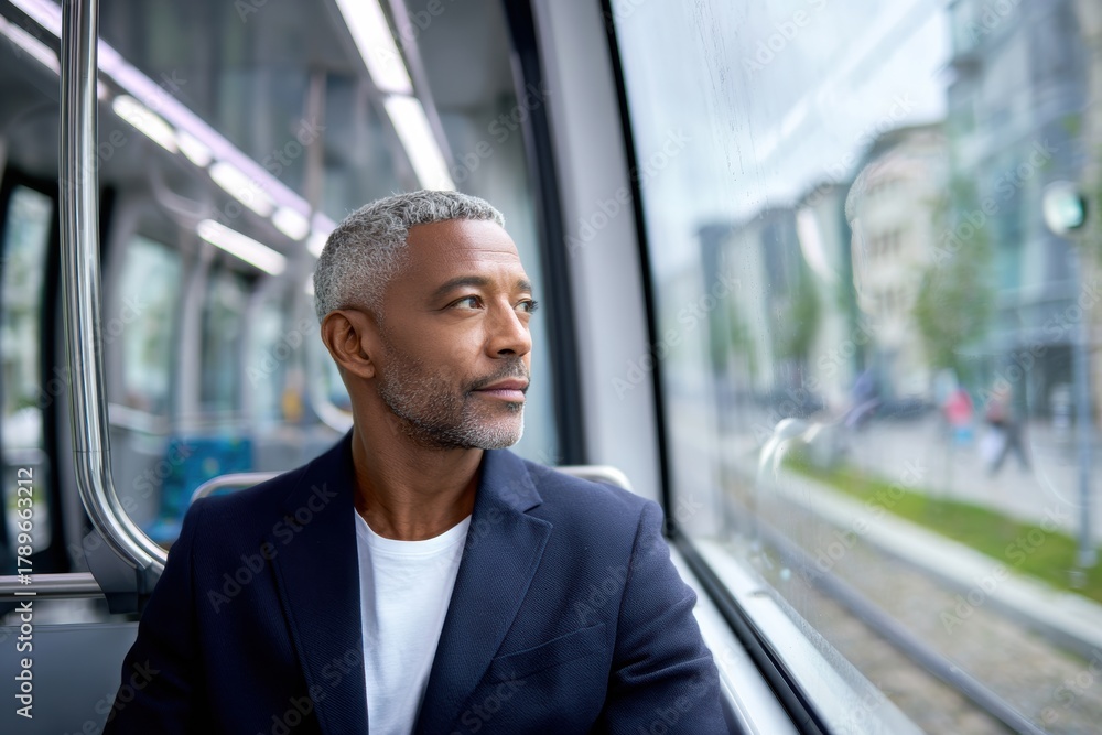 Calm ride through the city in a futuristic electric tram with panoramic views and modern design #1789663212