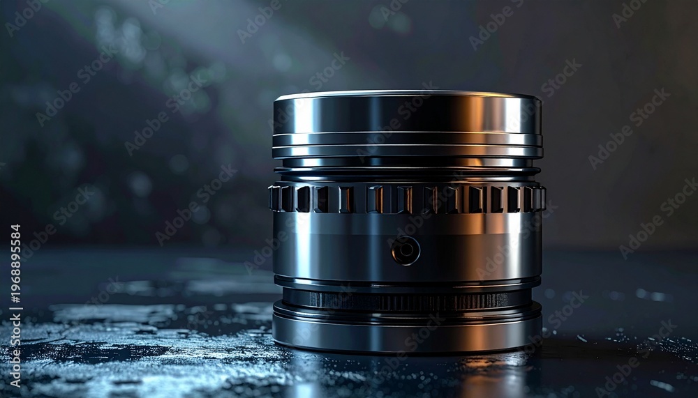 Camera Lens on Dark Reflective Surface. #1968895584