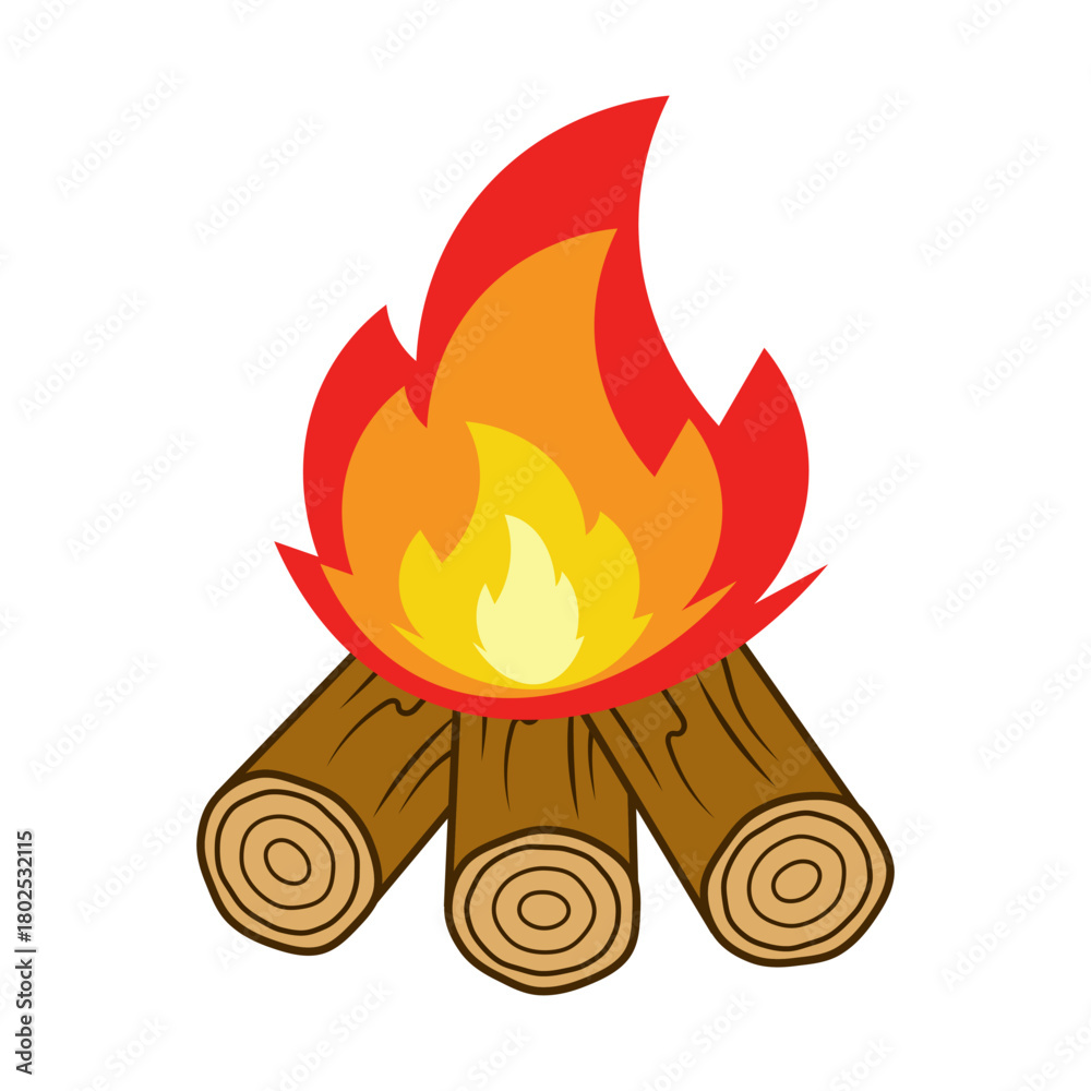 Campfire with Burning Logs Vector Illustration. Perfect for camping designs, outdoor adventure themes, childrens books, activity worksheets, stickers and educational materials. #1802532115