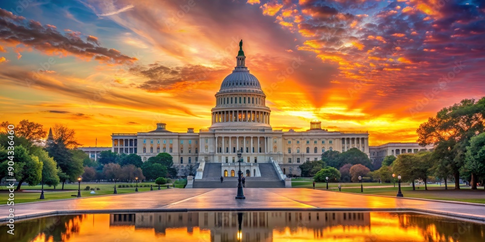 Capitol Hill Sunrise Reflection, Washington DC, USA, Capitol Building, Golden Hour, sunrise, capitol #904336460