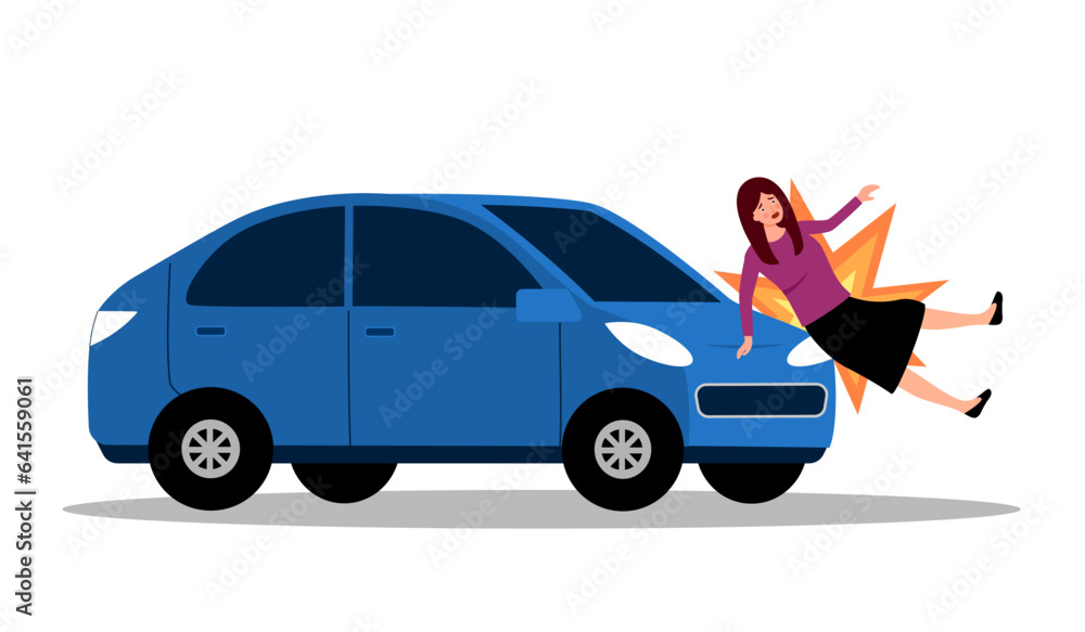 Car hit woman pedestrian on road. Car accident concept. Drunk driver victim. #641559061