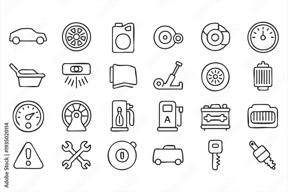 Car maintenance and dashboard symbols icon collection in vector line style #1935020114