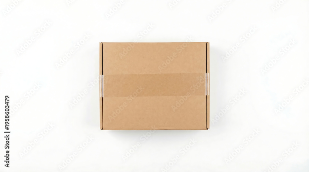 Cardboard Box Top View: A close-up top view captures a pristine, unfolded cardboard box. This image suggests simplicity, packaging, and the anticipation of new beginnings. #1958603479