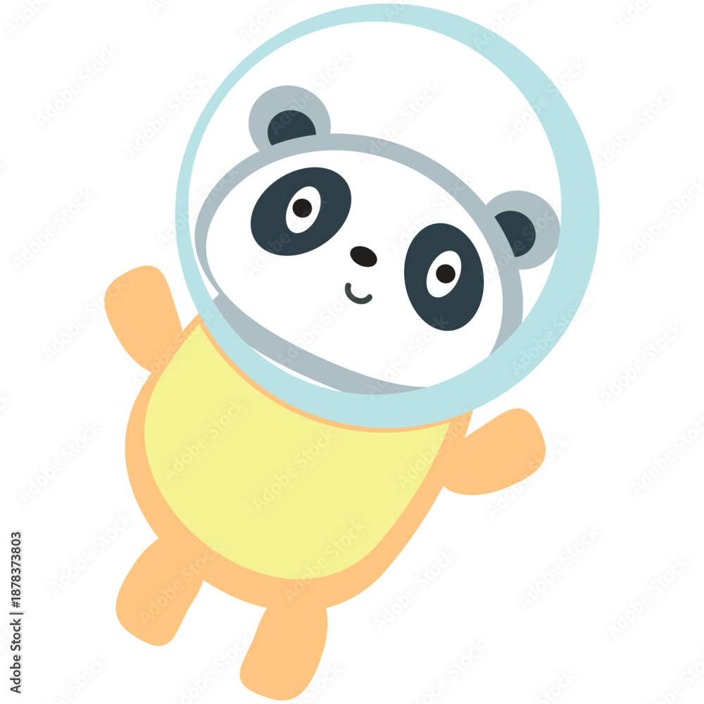 Cartoon funny panda cosmonaut in spacesuit vector. Cute bear animal astronaut character isolated on white background. Cosmos exploration, cosmic travel and astronomy science #1878373803