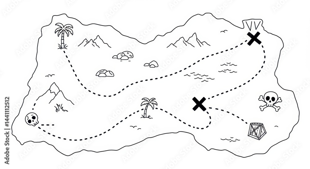 Cartoon Treasure Map with Dotted Paths and X Marks #1441112512