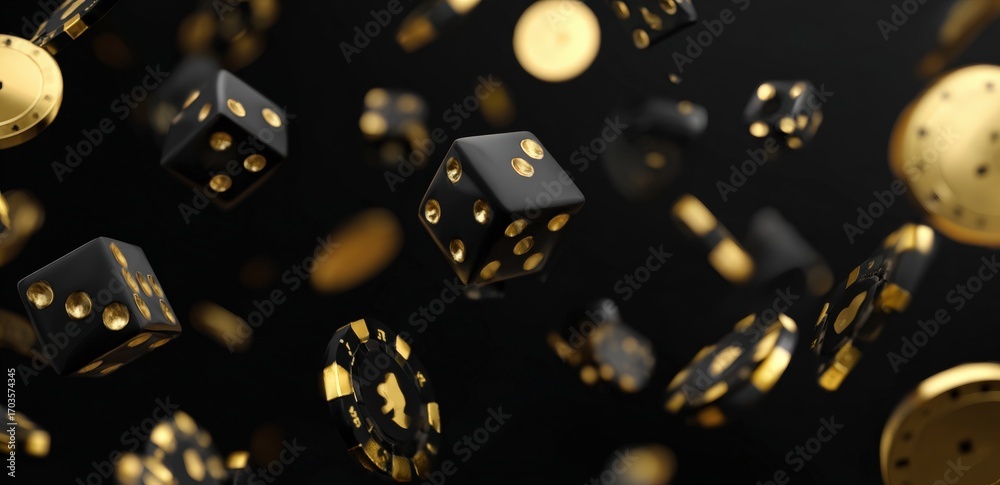 Casino gambling pieces in motion against a black backdrop #1703574345