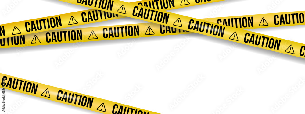 Caution tapes. Yellow warning danger tapes. Do not cross ribbons. Realistic tapes for police, Restricted area, under construction, crime scene. overlapping diagonally ribbon on transparent background #1556908806
