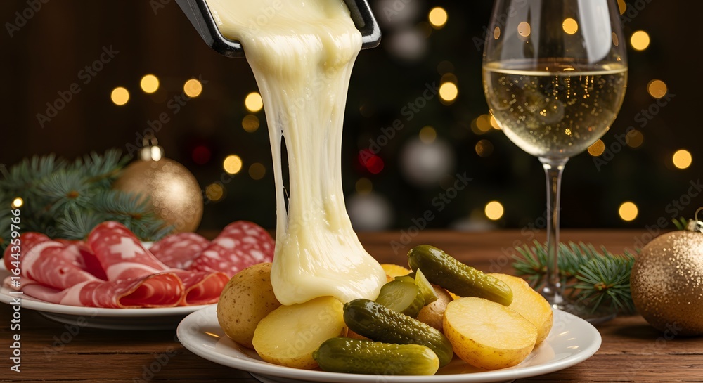 "Celebración de Raclette Suiza con Queso Fundido sobre Patatas" #1644359766