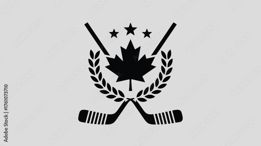 Celebrate Canada's hockey passion with this sporty logo design featuring crossed sticks, a maple leaf, stars, and laurel wreath for winning teams #1761073710