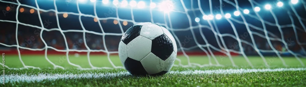 Celebrating Victory: Player Scoring a Goal in a Vibrant Stadium Setting with Intense Focus #961243975