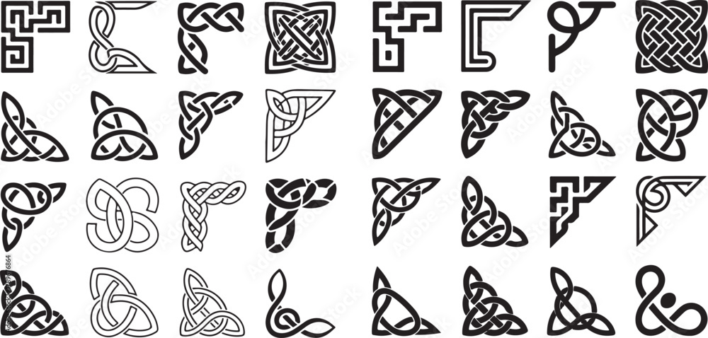 • #1789676572 Collection of Celtic Knot Corner Designs Border Graphic Ornament Irish Style Elements
