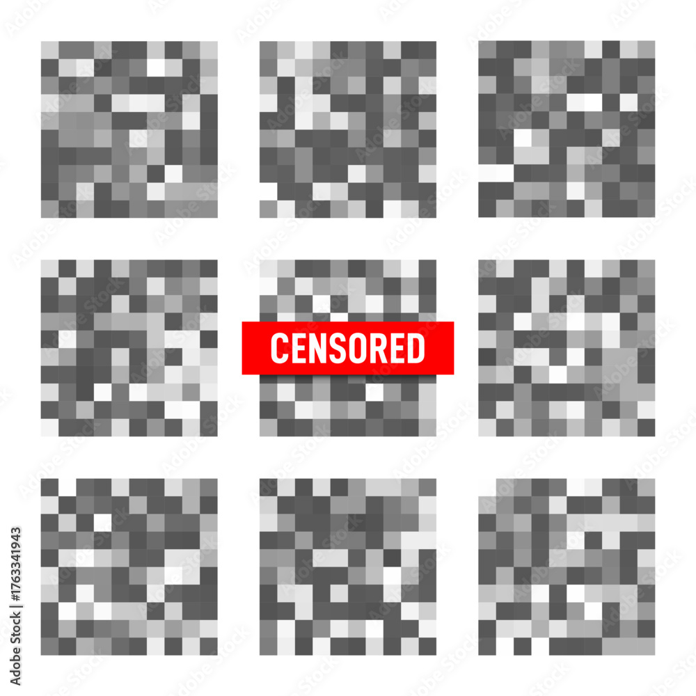 Censorship pixelated effect. Blurred pixels effect for adult and sensitive content. Censorship mosaic sign with blurred pixels. Collection of censorship bars for nudity and adult content #1763341943