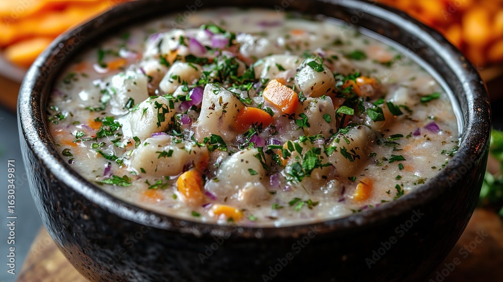 Ceviche ocean with leche de tigre tide pools, sweet potato islands and cancha corn reef #1630349871