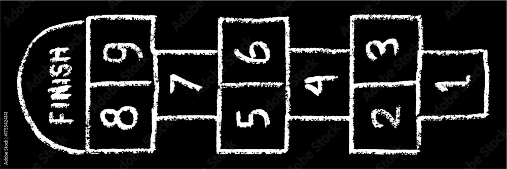 Chalk hop scotch vector. Ideal for childhood games, playtime, and schoolyard activity themes. This graphic symbolizes fun, simple outdoor entertainment, and retro play. #1755424141