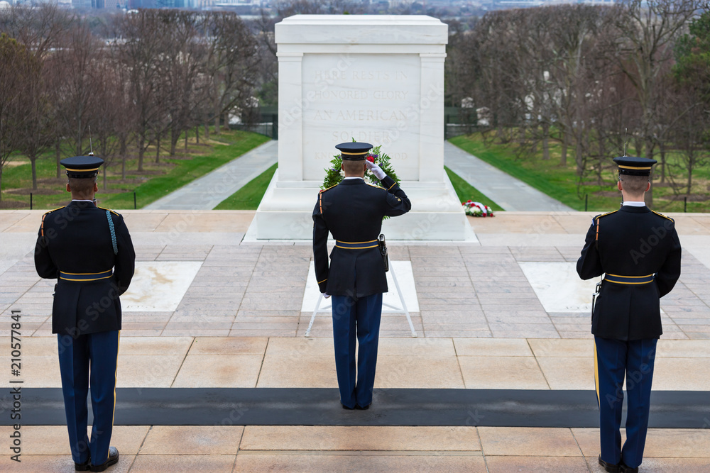 Changing of the Guard at Tomb of the Unknowns, Arlington National Cemetery, Washington DC, USA #210577841
