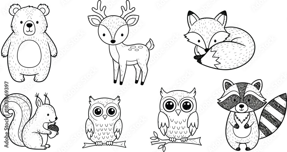 Charming woodland creatures silhouette vector bundle cute fox rabbit owl deer hedgehog raccoon eps scalable silhouette vector illustration white background #1873869397