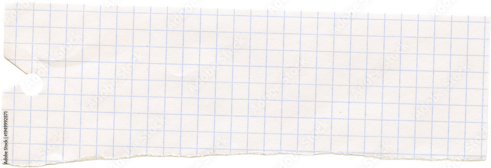 Checkered graph line torn ripped paper. Scrapbook collage crumpled piece. Note memo sheet #1949992871