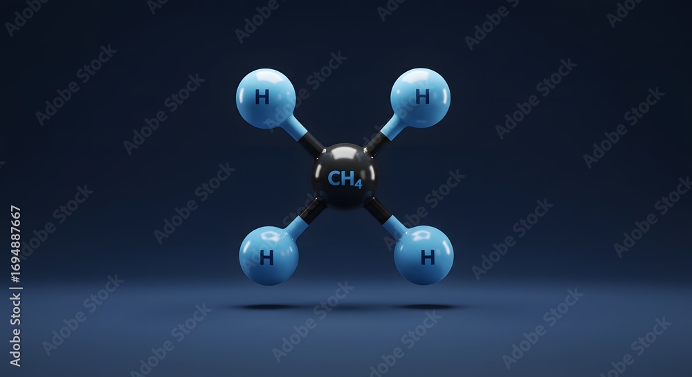 Chemical structure of methane molecule with four hydrogen atoms #1694887667