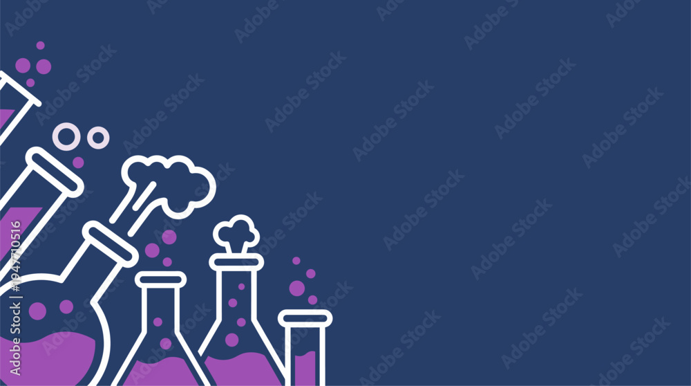Chemistry laboratory glassware with purple liquid and bubbles vector illustration background #1947710516