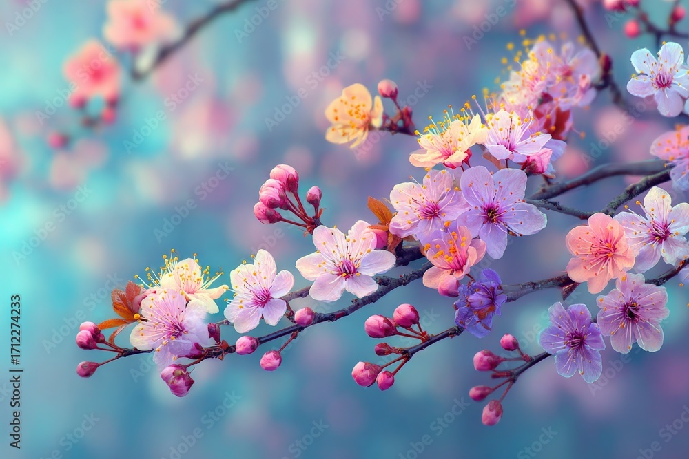 Cherry blossoms bloom beautifully in spring against a soft blue background enhancing the tranquility of nature #1712274233