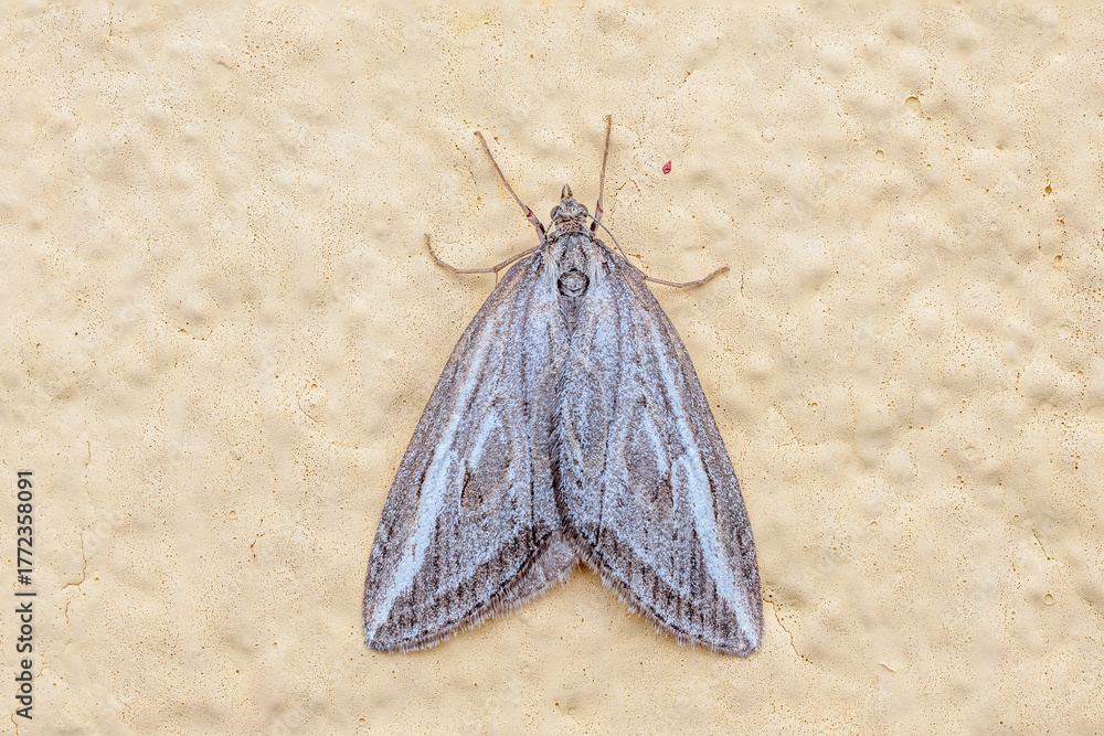 Chesias legatella. Legatela moth perched on the facade of a house. #1772358091