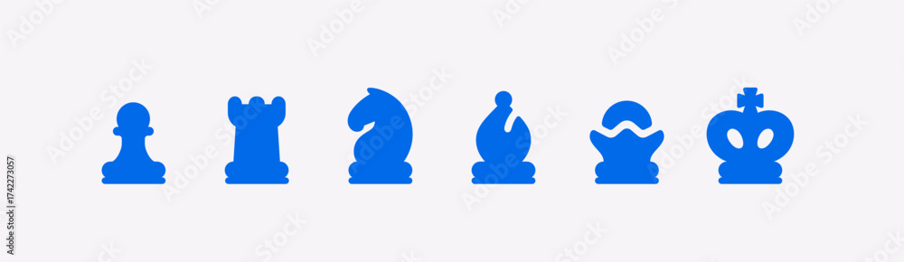 Chess pieces set for mobile application. Vector illustration of chess icons top view for chessboard display. Flat design symbols of king, queen, rook, bishop, knight, and pawn for digital interface. #1742273057