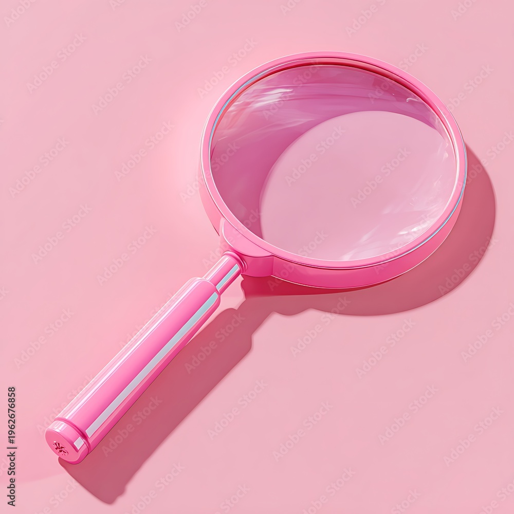 Chic 3D Pink Magnifying Glass on Pastel Pink Background, Soft Lighting, Minimalist Research Tool, Concept for Analysis and Discovery #1962676858