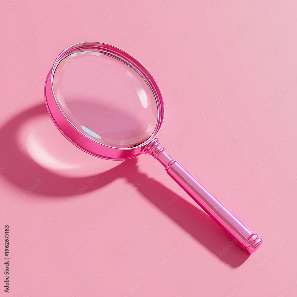 Chic Pink Magnifying Glass on Pastel Pink Background, 3D Rendering, Focus on Detail, Investigation, Discovery, and Modern Design Concepts #1962677183