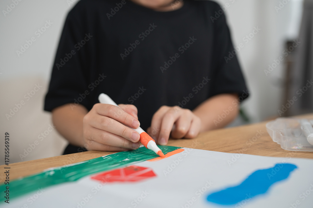 Child Engaged in Creative Art Activity with Colorful Markers and Paper at Home in Bright and Inviting Environment #1785569319