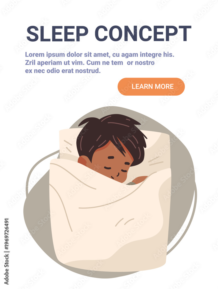 Child sleeping peacefully bed cozy blanket calm night muted colors soft background website banner template #1969726491