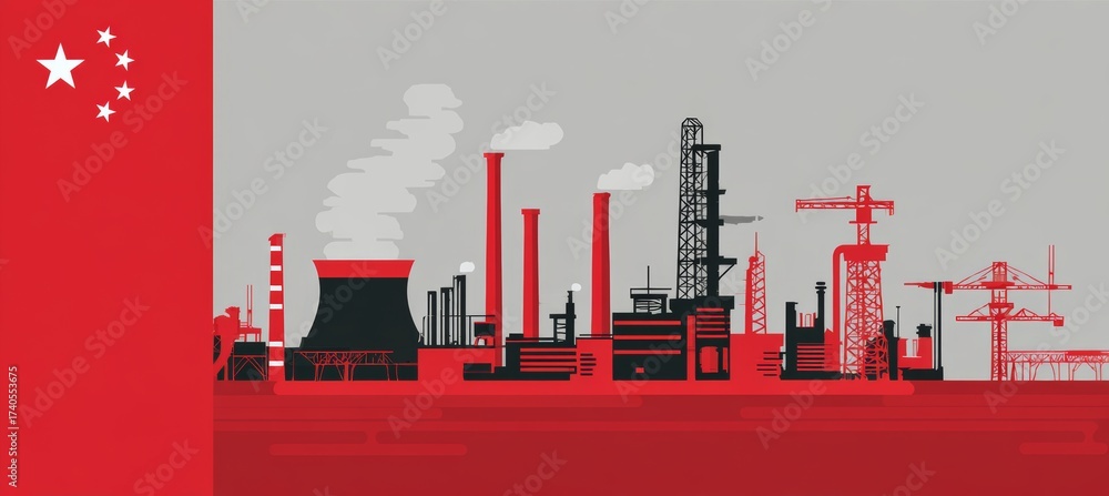 China flag on power plant. Industry super power.Generative AI technology. #1740553675