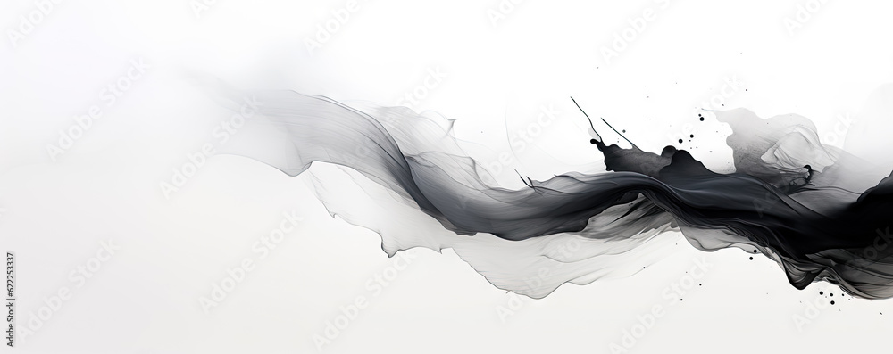 Chinese ink painting black and white abstract background, copy space, calm and elegant, zen, Asian calligraphy wallpaper. #622253337