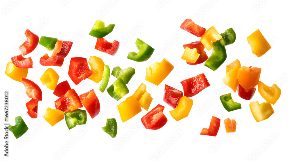 Chopped Bell Peppers Red Yellow Green Scattered isolated on a transparent background #1667238012