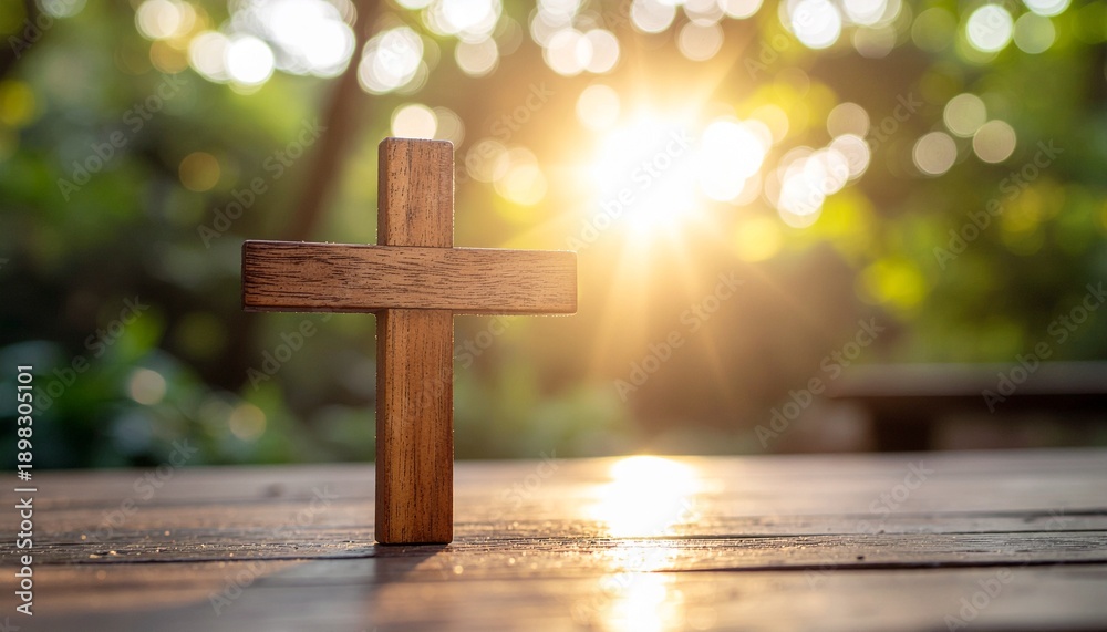Christian Background with Cross and Warm Golden Light #1898305101