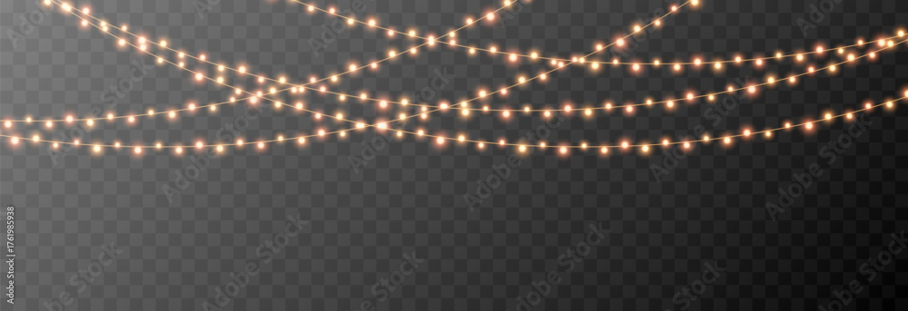 Christmas garland png. Bright Christmas golden lights. Christmas decoration for holiday design. #1761985938