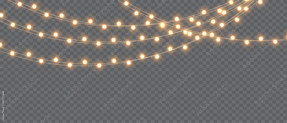 Christmas lights on a transparent background. Christmas light PNG. Set of Christmas glowing garlands. For advertising invitations, web banners, postcards. Vector. Christmas decoration, LED lam #967251648