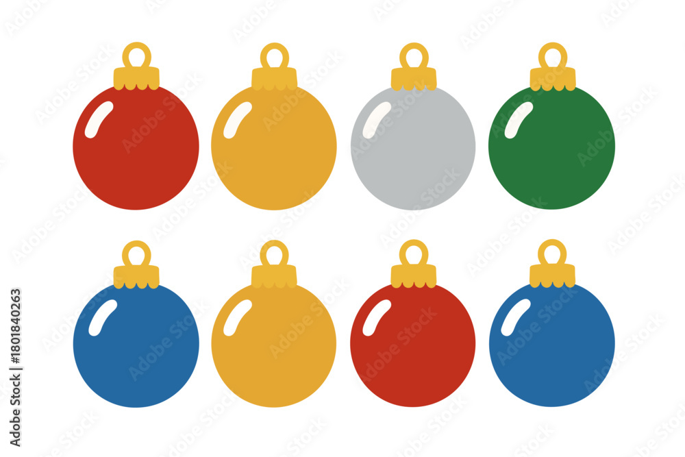 Christmas ornament icon set. Christmas ornament vector set. Collection of round holiday baubles in red, green, gold and blue. Design for card, banner, sticker, poster. #1801840263