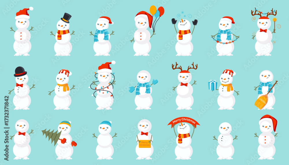 Christmas snowman character. Cartoon snowman. Cartoon winter holidays snowman. Snowman icons #1732371842