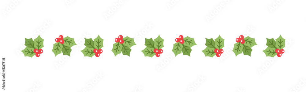 Christmas themed decorative border and text divider, Mistletoe and Candy Cane Pattern. Vector Illustration. #652679188