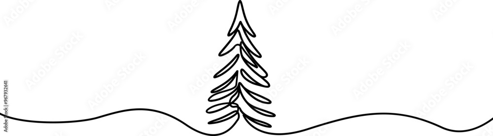 Christmas tree one line drawing.Merry Christmas decoration continuous line.Continuous line drawing of christmas tree with a star. #967932641