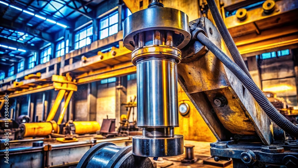 Chrome Hydraulic Piston: Industrial Machinery Technology, Yellow Tractor Excavator Lifting Equipment #1193340886