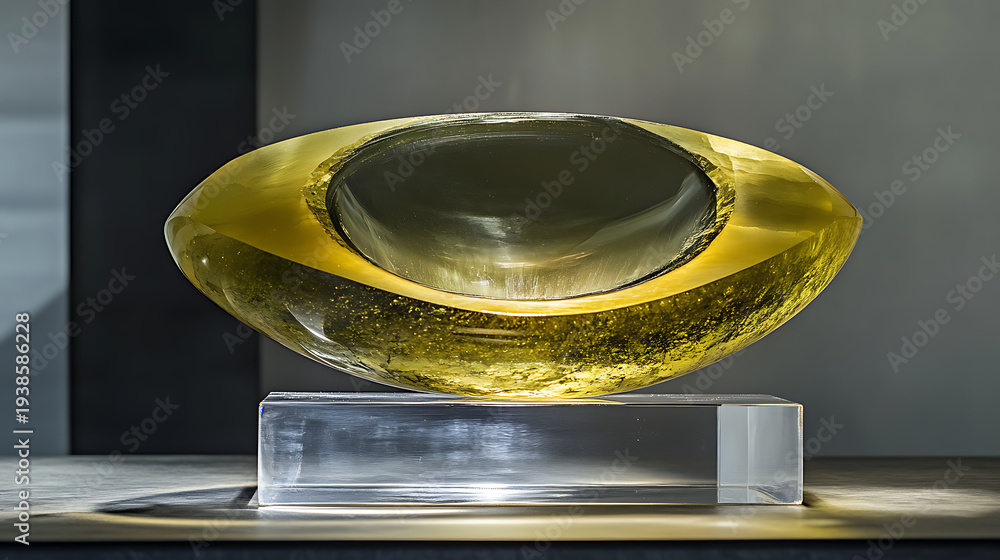 Chrysoberyl cat’s eye suspended on transparent stand under directional spotlight #1938586228