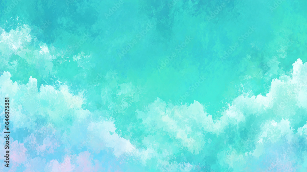 Cielo pastel con nubes etéreas y suaves, tonos turquesa y rosados, fondo abstracto y soñador. #1646875381