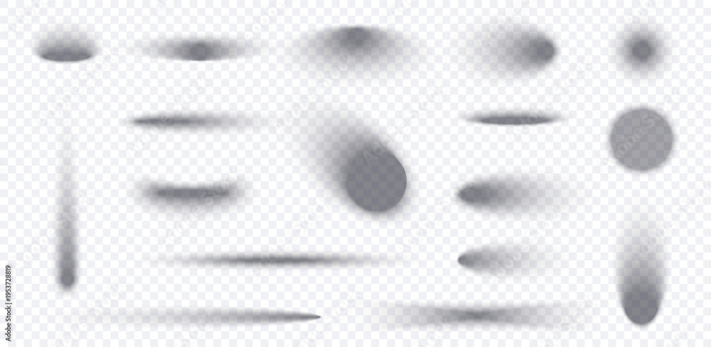 Circle and oval shadow set isolated on transparent background. Realistic shadow with overlay effect, drop round box vector and shade oval ball. Background floor with abstract blur set object. #1953728819