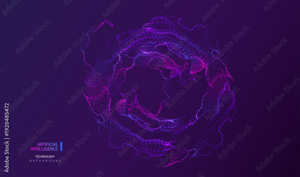 circle in motion, futuristic technology concept, AI big data particle dotted purple circle, vector abstract banner. #1920485472