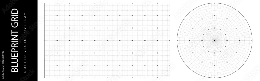Circle millimeter grid with gauge tech overlay, digital ruler. Radar line of radial protractor texture, circular graph element. Angle grid square pattern with circle math chart for technical blueprint #1893679232