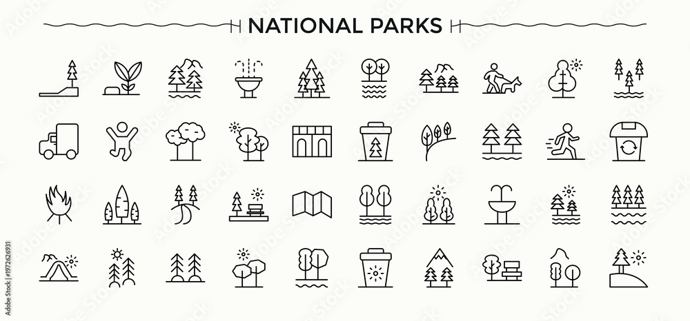 City Park line icon set. Park icon set. Contains such symbols as outdoor, town, recreation, landscape, infrastructure, house, park and more. Editable stroke. Vector illustration. #1972626931